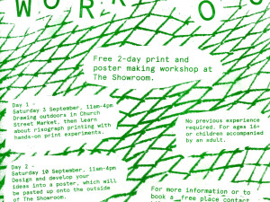 The exhibition incorporates a new body of work and an embedded cycle of print workshops running throughout the show, building on the radical histories of print studios and workshops in The Showroom neighbourhood; and the third iteration of The Showroom Mural Commission (2022-2023).
