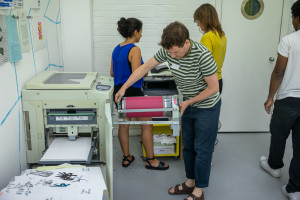 Building upon a period of collaborative research in the local neighbourhood, Church Street Library & histories of radical community print groups, in-situ printmaking workshops created the context for a programme of drawing, print and poster-making sessions running on weekends throughout the exhibition.