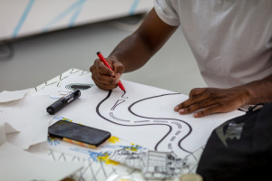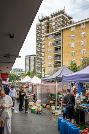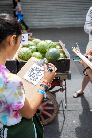 Using drawing as a tool for communication and opening up spaces for critical reflection at times of rapid change, where Church Street is in the midst of major long-term redevelopment, the workshops have involved a collaborative process with community groups, individuals from The Showroom neighbourhood and beyond. Over time, posters of varying scales are being pasted up in an accumulating collage enveloping the facade; an amplification of voices revealing drawing, printmaking and collage as accessible platforms for reflection upon shared experiences; a means for personal expression to be collectively experienced by all.