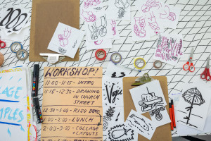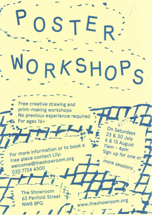 This cycle of day-long public poster making workshops formed an integral part of Adam Shield: Amp Envelope at The Showroom.