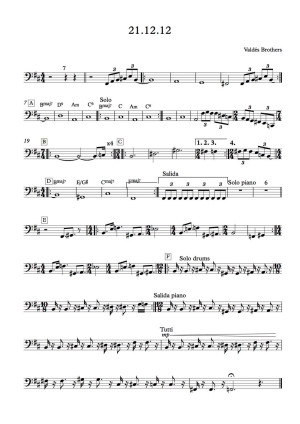 Leyanis: I would adapt the rhythmic base for a larger ensemble adding miscellanea, “bata” drums, box drums, “botijas”, and human voices —gypsy chants—. All that would be adapted to the story I want to convey; 12/21/12 depicts a departure with a single note (as if it were a droplet), that develops with changes of beats shifting from more reflective parts to more lively ones, to conclude in the same way it starts.
