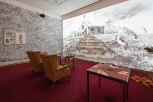 In Mothering Memory Phoebe Boswell explores the sense of ‘belonging’ and is anchored to a restless state of diasporic consciousness, combining traditional drawing with digital technology. Her practice draws on her own experiences of belonging, having been born in Kenya and brought up in the Arabian Gulf; she now lives and works in London. She creates powerful images, animations and immersive installations in works that layer drawing, animation, sound, video, interactivity, and most recently, performance. These works are created in an effort to find new languages robust yet open and multifaceted enough to house, centre and amplify voices and histories which, like her own, are often systemically marginalised or sidelined as ‘other’.*
