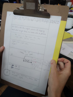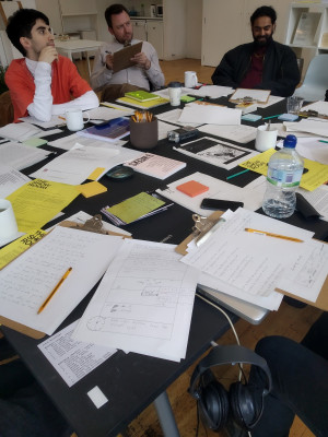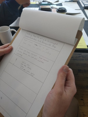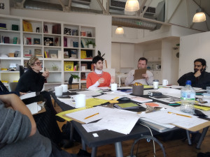 The workshop considered four floating concepts – intuition, content, composition and form – in relation to the materials on display in The Showroom Studio.