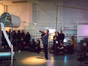 The first performances took place on the opening night, Thursday 9 December, 6.30–8.30pm, as a series of short ‘trailers’ or demonstrations to introduce audiences to the use and function of each mobile theatre. The second performance, led by the participants, took place on Wednesday 13 December.
