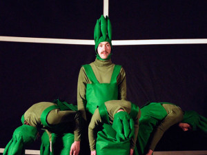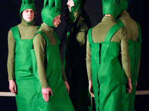 Asparagus: A Horticultural Ballet is a live performance piece inspired by rumour and myth. In the late 1970s, while still a student, Waw Pierogi, later of an obscure New Jersey minimal synth band xex, composed the interdisciplinary Asparagus: A Horticultural Ballet. No documentation of the piece exists, but Pil and Galia Kollectiv had become fascinated by this work, alongside another lost work, Oskar Schlemmer’s Triadic Ballet. The Kollectivs’ desire was not to recreate either, but rather they were intrigued by the possibilities of making a new work through the collision of ideas left behind by former art movements and other cultural phenomena. For them unrealised, forgotten and failed revolutions were as much a legacy of modernism as the utopian belief in progress that we have inherited.