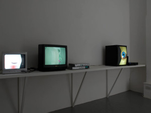 For The Showroom and Animate Projects, Sebastian Buerkner developed two new works that stripped away the narrative element of his practice to date and attempt an analytical investigation into the presentation of emotional states using the medium of animation. Intimate Customs is a series of monitor-based works that act in many ways as sketches for his second work in the show Blur Belt. While functioning as a complete installation, some of the works in Intimate Customs are intended to be shown in pairs, others singly. Through a combination of abstraction and imagery drawn from the artist’s existing visual lexicon, Buerkner creates associations between particular emotions and values such as speed, weight, colour, form and sharpness. This combined with Buerkner’s composition of ambiguous soundtracks for these works created an environment that disrupted the viewer’s ability to read and process the images presented thereby unlocking the door into their own subconscious.