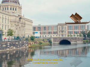 When Water Embraces Empty Space focuses on the Luf Boat, an exquisitely hand-carved fifteen-metre-long, wooden outrigger sailboat, from the island of Luf in Papua New Guinea. The boat’s provenance has been the subject of much debate in recent years. Taken from the island’s inhabitants following a genocidal attack and brought to Berlin by German traders in 1903, the Luf Boat now resides in the ethnological collection of the Humboldt Forum. With the loss of the last boat of its type and the craftsmanship preserved within it, the islanders also lost the knowledge of how to build these large vessels.