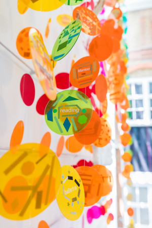 Workshops investigated ideas of identity, language and code-switching, along with personal and cultural mythologies. Considering the high percentage of children at Gateway Academy who come from bilingual or multilingual homes, every child was invited to choose and share a word, in any language, which became their contribution to a large-scale collaborative artwork that has now been installed permanently in the school’s entrance.