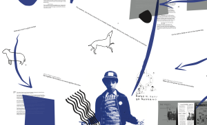 These multiple layers make up an image that evokes the library and the market place as sites of exchange, where people, stories and objects come together and interact.