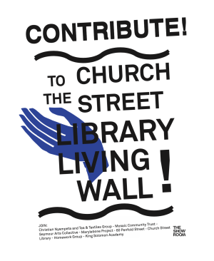 Collaborators include: Church Street Library English Speaking Club, Church Street Library Homework Group, Church Street Library Staff and Volunteers, Church Street Market, City of Westminster Archives Centre, Friends of Church Street Library, King Solomon Academy, The Marylebone Project Women’s Day Centre, The Mosaic Community Trust, Penfold Community Hub at 60 Penfold Street and Seymour Art Collective at the West London Day Centre