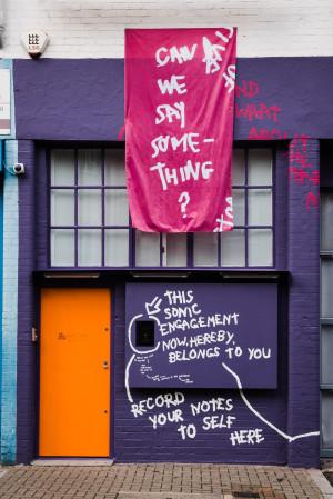 Departing from an intimate methodology of walking, for Notes To Self (Intimate 1) Buhlungu questions: how do we create structural spaces and communicate ideas of gathering within architectural, urban and public restrictions? How can one make visible personal reflections and poetics in the context of enduring collective ownership? Before the Covid-19 pandemic, the Mural Commission posed these questions through a site-specific installation where passers-by could record their own notes to self that would be listened to, manifested, and archived as a living ecosystem of local responses.