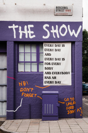 Simnikiwe Buhlungu’s mural extends from an ongoing mixtape project, Notes To Self: A Mixtapenyana, whereby she explores the idea of self, s(p)lace and strolling as a form of knowledge production. Initially developed during her participation in a residency hosted by Future Assembly between Wysing Arts Centre in Cambridge and London in May 2019, the project follows recollections interrogating the idea of selfhood in relation to a constellation of encounters with distinct environments, people, narratives, happenings, and ecologies. These earlier and new site-specific mixtapes are structured around a thematic tracklisting of ‘self-historicising, self-determination, self-referencing and self-actualisation’. The Showroom Mural Commission is not only be a time-based personal reflection, but also a fluctuating surface for self-expression to radiate and resonate outwards.