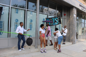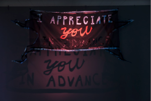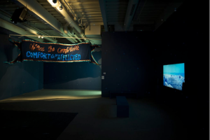- iPad with Cauleen Smith’s “In The Wake” Banner, “No Wonder I Go Under”