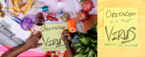 The Manifesto acts as a call to action rather than an instructional manual to dismantling capitalism. Responding to national and global events in real-time, it began with more playful tenets such as watching movies online and gradually grew into calls for the abolition of prisons, police, and “capitalist racial illogics.” Some tenets were also love poems to the planet suffering due our relentlessly extractive economy, and others were odes to the Black women, who are leading the struggle for collective liberation.” – Jad Dahshan