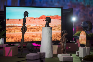 “Through films, objects, and installation, Give It or Leave It offers an emotional axis by which to navigate four distinct universes: Alice Coltrane and her ashram, a 1966 photoshoot by Bill Ray at Simon Rodia’s Watts Towers, Noah Purifoy and his desert assemblages, and black spiritualist Rebecca Cox Jackson and her Shaker community. These locations, while not technically utopian societies, embody sites of historical speculation and radical generosity between artist and community. In reimagining a future through this mix, Smith casts a world that is black, feminist, spiritual, and unabashedly alive.” – Cauleen Smith: Give It or Leave It, Institute of Contemporary Art, University of Pennsylvania, 2018